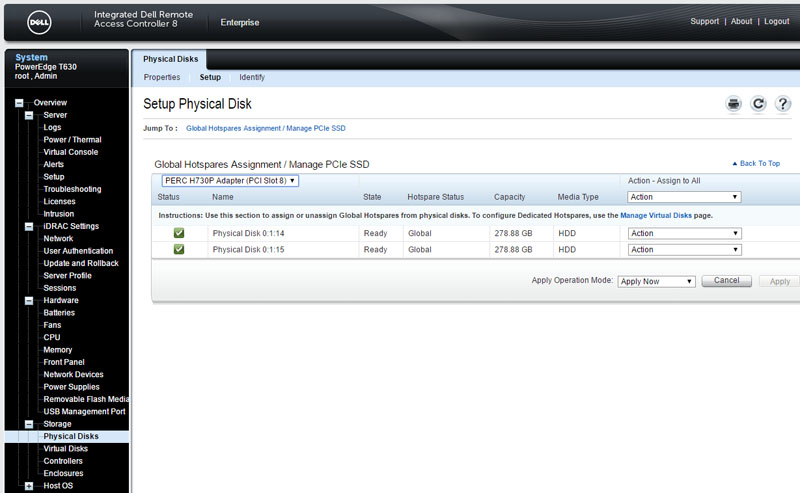 Aside from being able to see information and setup RAID arrays, one can also manage hot spares directly from the BMC interface.
