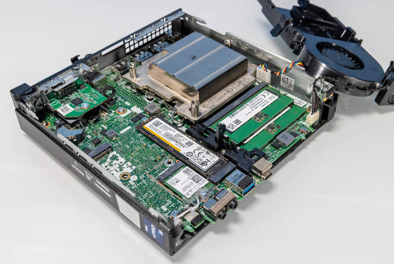 One item we did not get with this system was a 2.5″ tool-less caddy. Storage these days is moving to M.2 and Dell has cooling challenges anyway in this form factor. Removing the 2.5″ drive infrastructure also meant Dell could remove the hard SATA data and power connector on the motherboard that was a class-leading solution in the previous generation.