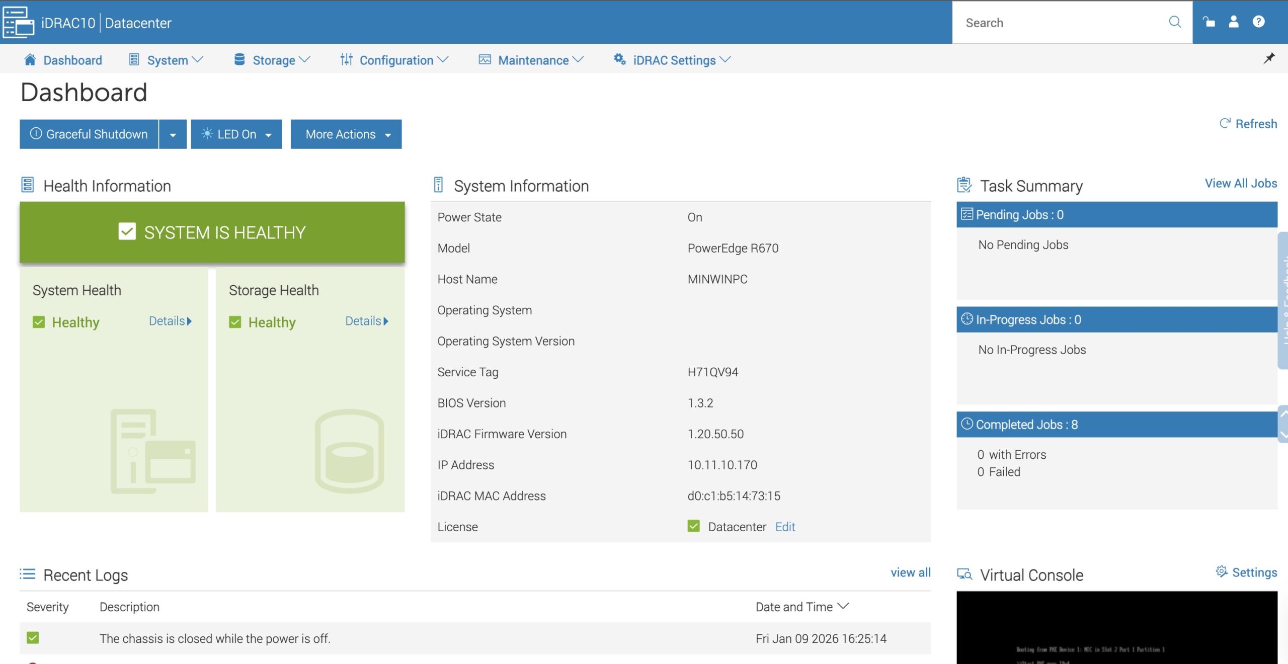 Dell PowerEdge R670 IDRAC 10 Dashboard