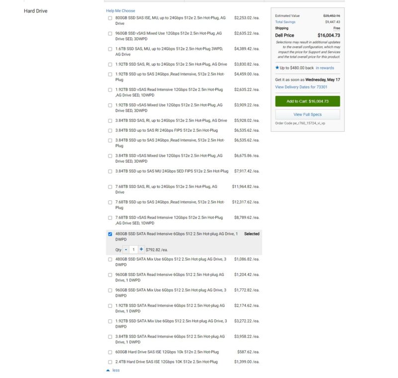 In the early 2010’s I lead a team at PwC to re-do the pricing, discounting, and sales exception process at a large competitor to Dell EMC, so this is not shocking as a 60% discount was common in the industry at that time. What was shocking was seeing prices that were intended to be discounted by 90%+ in a US list price. Ten years ago, OEMs had special list prices for countries like China in that range just so procurement teams there could walk away with a huge win by securing 90% discounts. I have not seen that same strategy in use with US customers as often until checking the price on our configuration.
