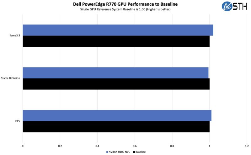 Overall, these results are within test variances, so that means the PowerEdge R770 is doing well on the cooling front. The H100 NVL also has configurable power consumption down to 200W, but ideally folks want to run them at or near full power to get the most performance from what is usually the single most costly component in the server.
