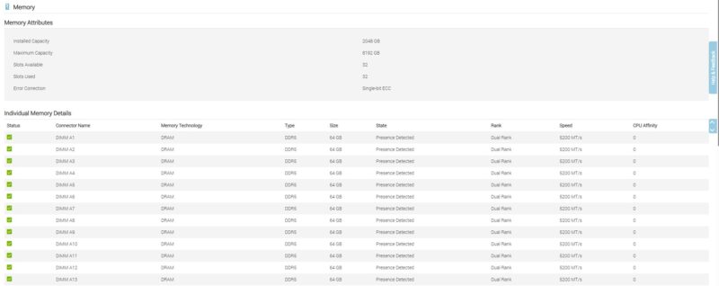 We see our components were almost entirely connected to CPU 0. There is a lot more going into this platform than what we have installed. Also, it should be noted that the server supports CXL memory as well.