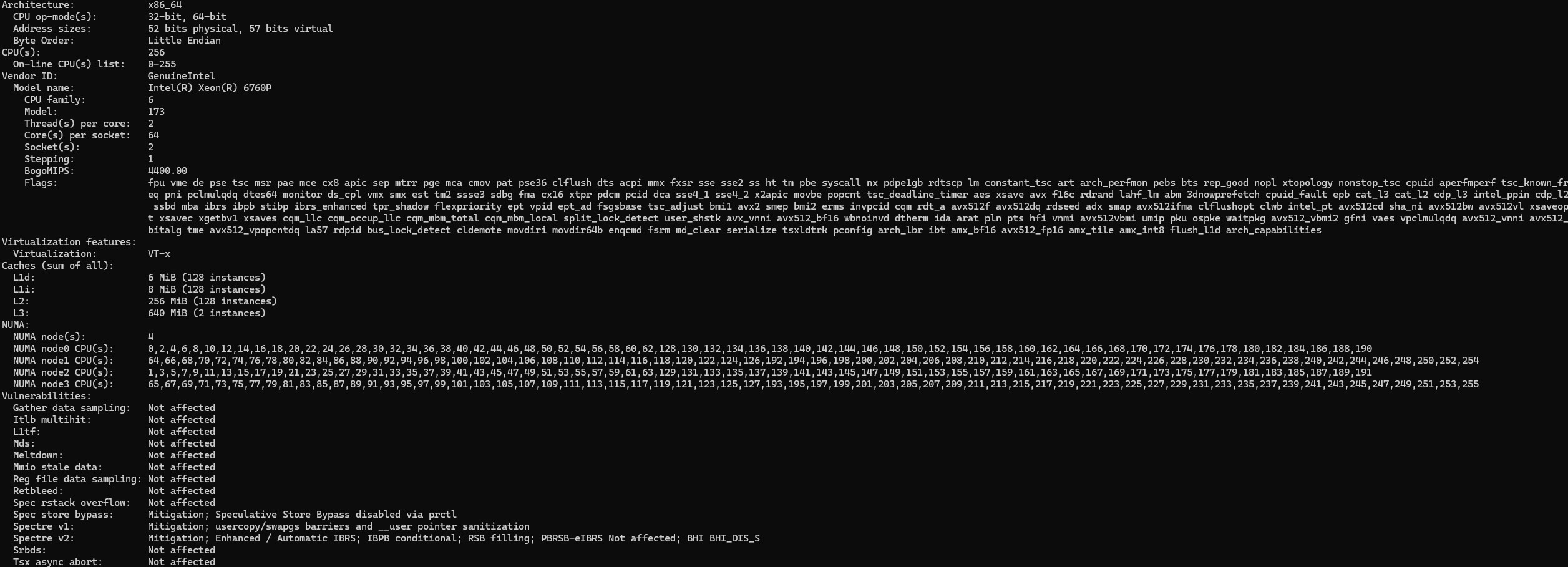 Dell PowerEdge R770 Dual Intel Xeon 6760P Lscpu Output