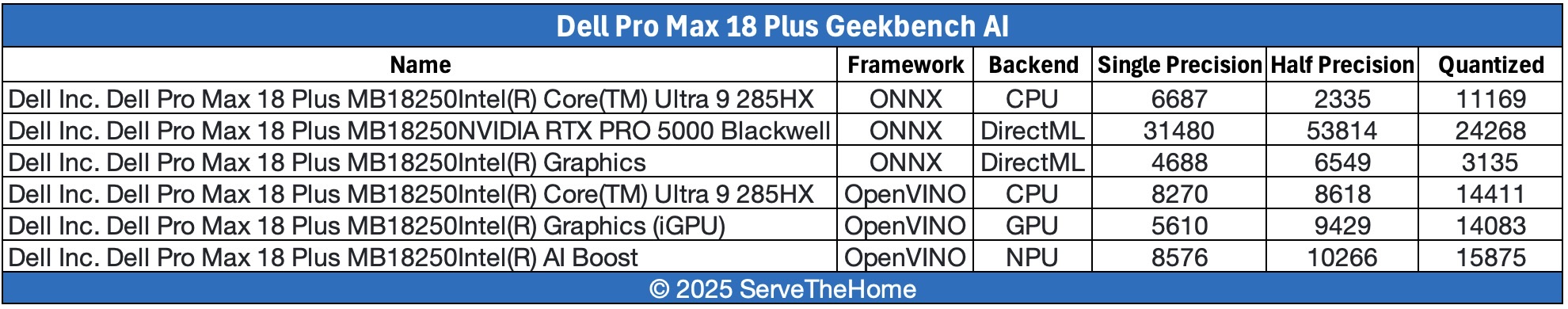 Dell Pro Max 18 Plus Geekbench AI Across Compute Elements