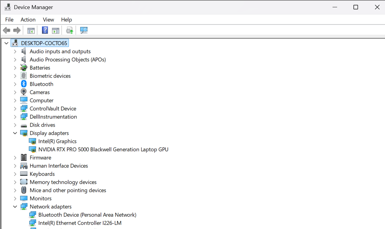Dell Pro Max 18 Plus Device Manager With NVIDIA RTX Pro 5000 Blackwell Generation Laptop GPU