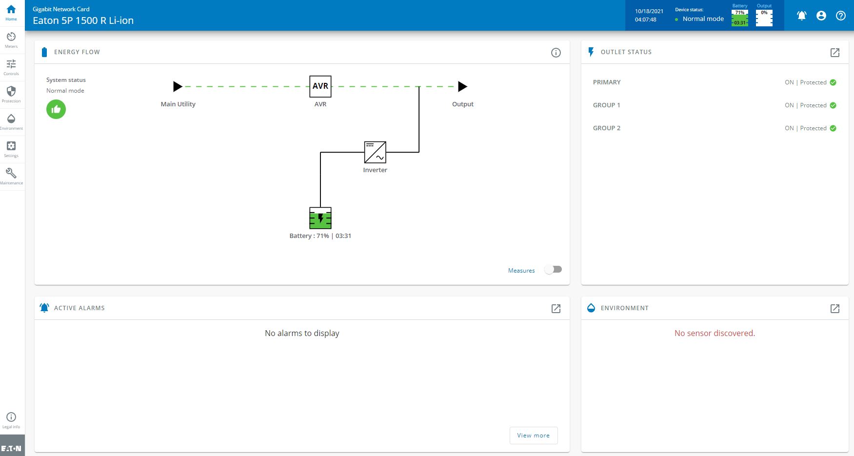 Eaton 5P 1500 R Li Ion 1U Dashboard 2