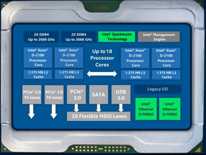 By utilizing Lewisburg PCH IP, Intel has features such as 4x 10GbE ports, access to QuickAssist integration, up to 14x SATA III ports, and additional downstream PCIe connectivity.