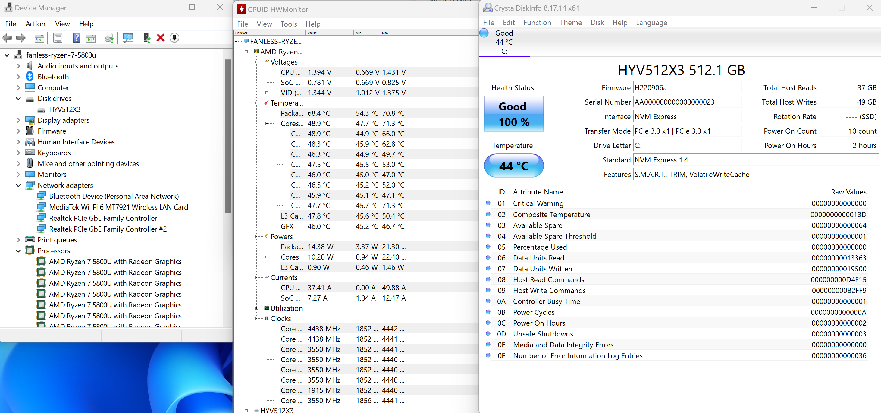Fanless AMD Ryzen 7 5800U Hardware Info