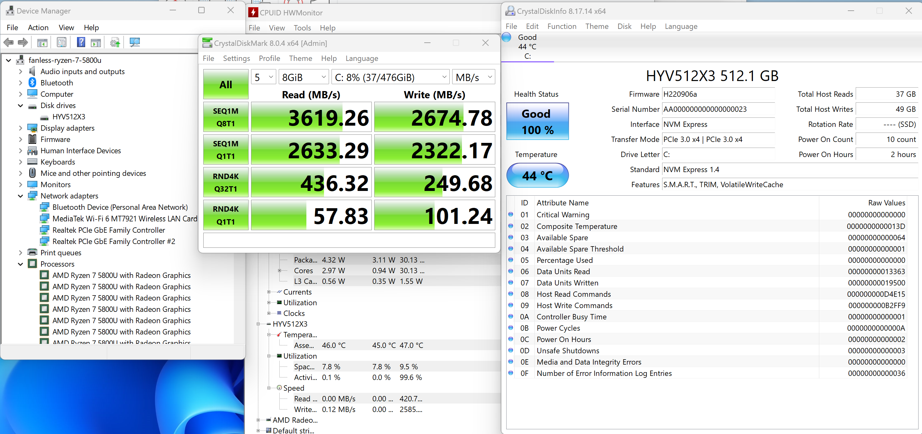 HomeFanless AMD Ryzen 7 5800U SSD Performance