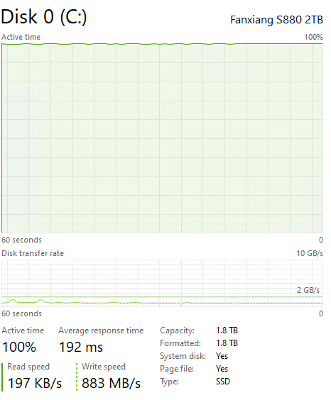 Normally we monitor the idle and maximum temperature during testing with HWMonitor to get some idea of the thermal performance and requirements of the drive. When I tested the S770, I discovered that drive was not properly reporting its own thermals, and that continues to be the case with the Fanxiang S880.
