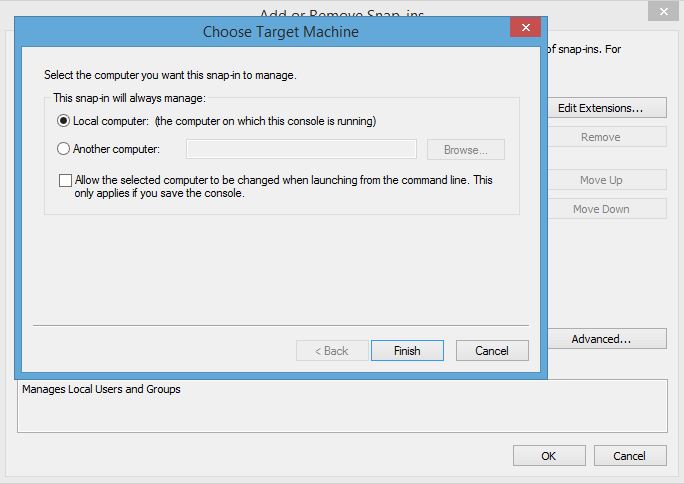 When I try to click Finish after selecting “Local Computer”, I get an error message saying it can’t be done with this version of Windows 8.1
