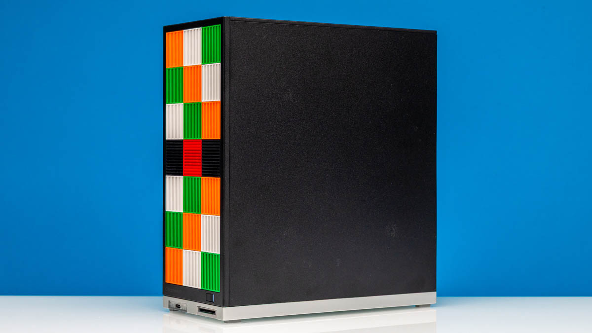 Framework Desktop AMD Ryzen AI Max + 395 128GB Front Angled With Tile Pack 1