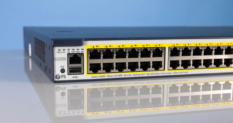 HomeFS S3410-48TS-P 48-Port PoE+ Switch ReviewFS S3410 48TS P Console And Ports 2