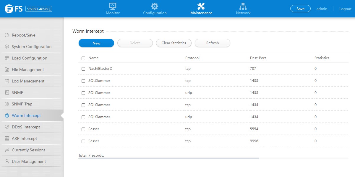 FS S5850 48S6Q Management Worm Intercept