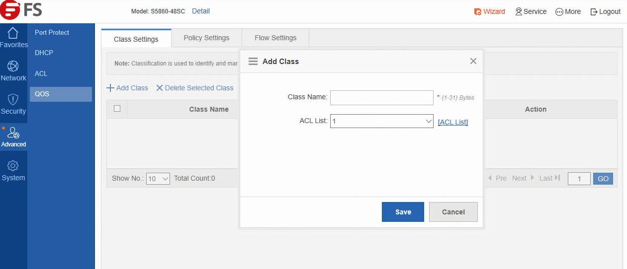 FS Management QOS Add Class