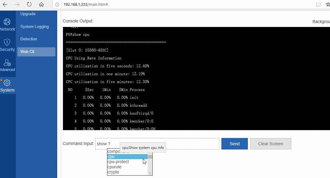 FS Management Web CLI Show CPU