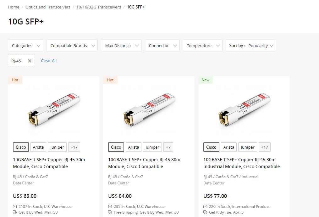 FS.com 10Gbase T SFP Modules