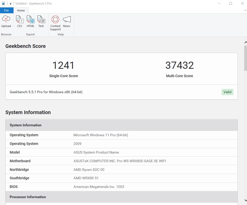 Geekbench 5 Running On Windows 11 Pro AMD Ryzen Threadripper Pro 3995WX