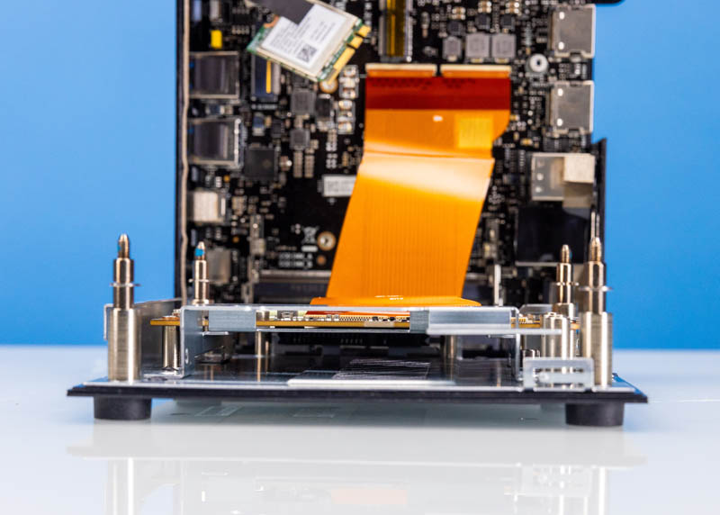 We can pull this out and see the expansion board with the DisplayPort. ASUS has configurable models much like we see in our Project TinyMiniMicro series. Geekom is using the DisplayPort optional module.