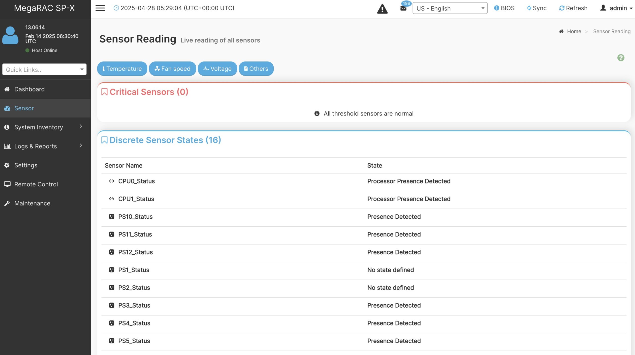Gigabyte G893-ZX1-AAX2 Management Sensor Readings