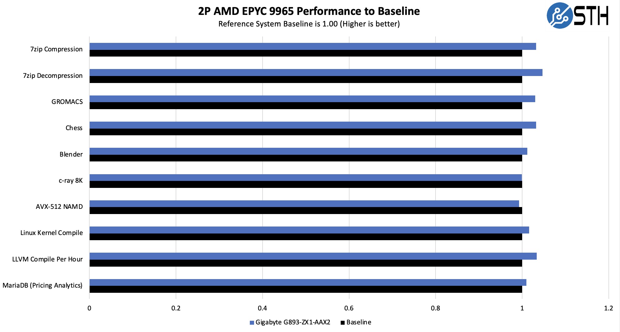 Gigabyte G893-ZX1-AAX2 AMD EPYC 9965 Performance to Baseline
