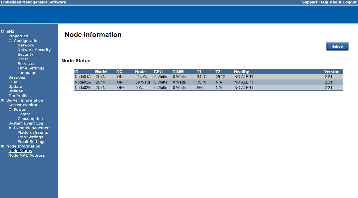 The CMC is run by an ASPEED BMC. This still uses the more traditional Gigabyte management interface, but it has some great features. Here is an example we set up in the lab with a dual CPU node, a single CPU node, a powered off node, and a node removed. An administrator can see this information remotely through one interface per chassis.