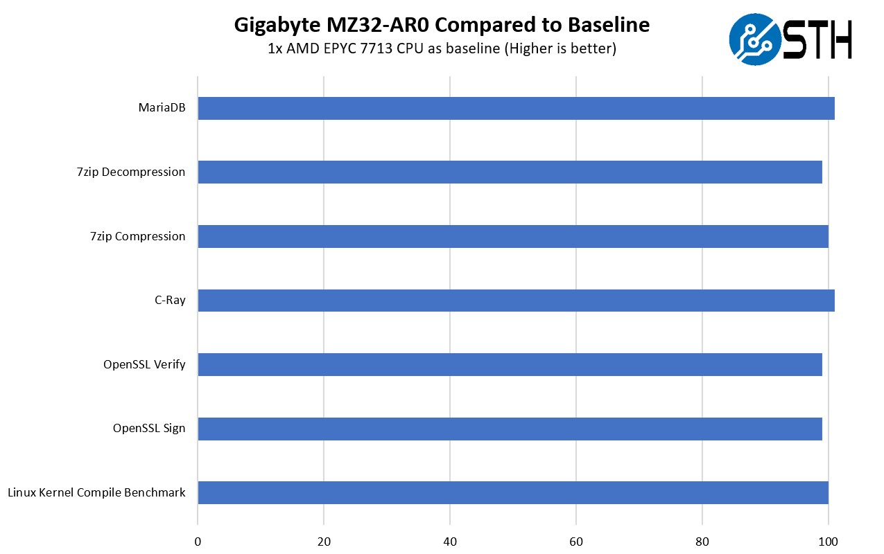 Gigabyte MZ32 AR0 Performance To Baseline