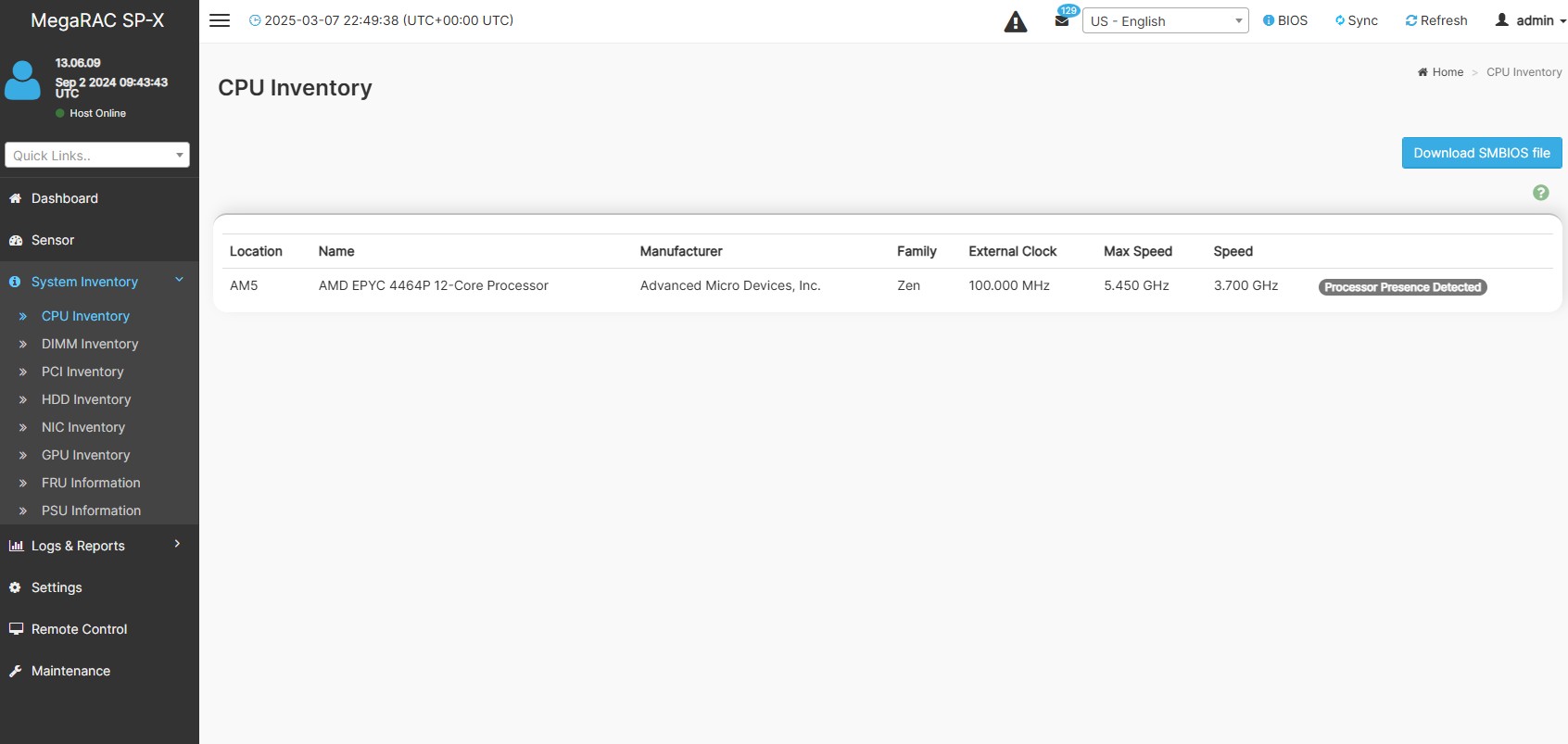 Gigabyte R113 C10 AA02 MegaRAC SP X Dashboard