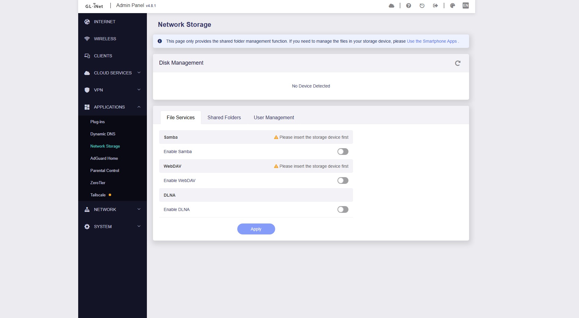 GL.iNet Beryl AX GL MT3000 Management 8 Storage