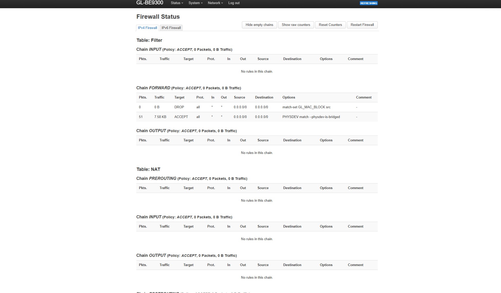 GL.iNet Flint 3 BE9300 LuCI OpenWRT Firewall Iptables