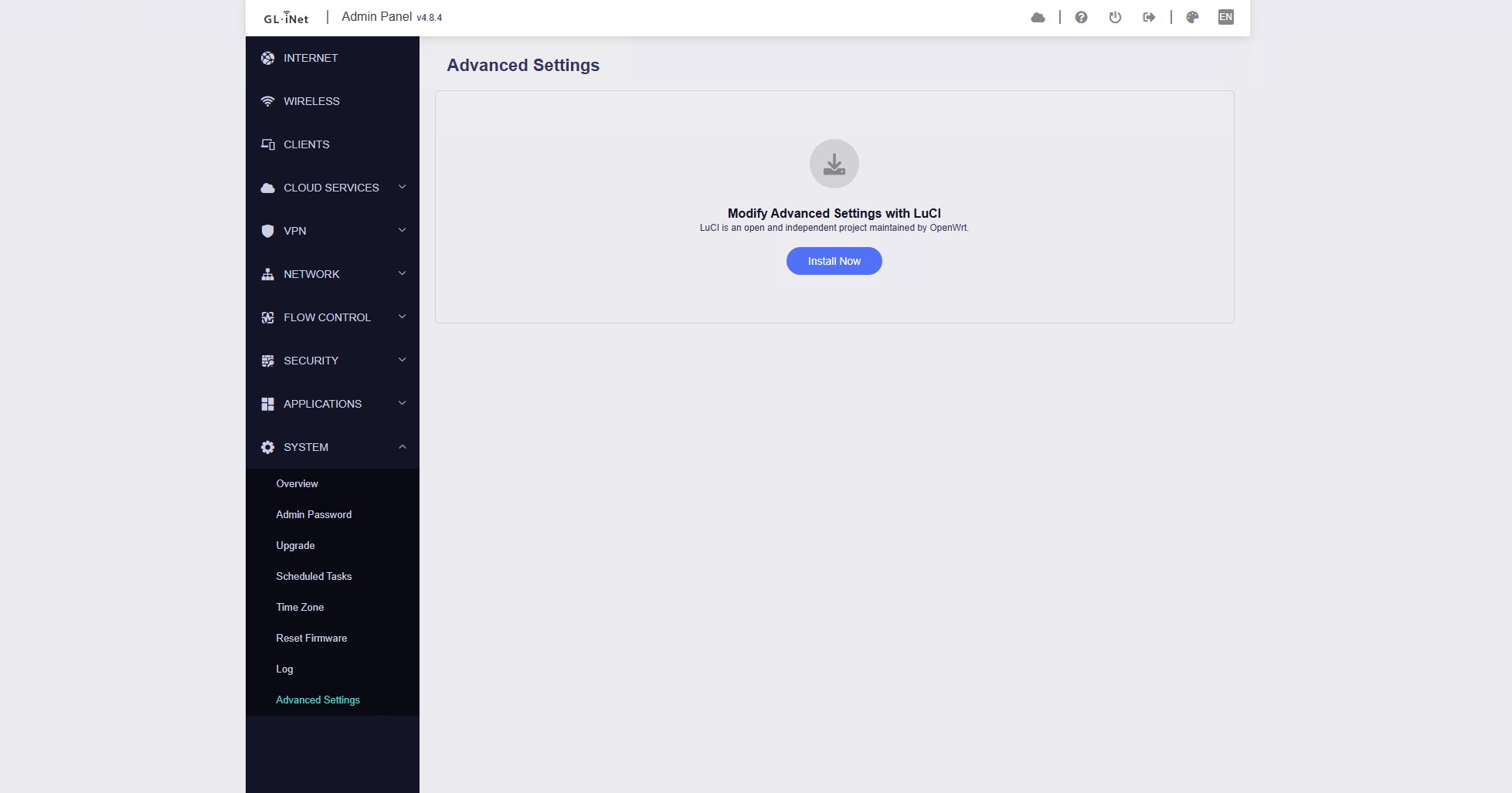 HomeGL.iNet Flint 3 BE9300 WiFi 7 2.5GbE Router Review Good In Many WaysGL.iNet Flint 3 BE9300 System Advanced Settings LuCI