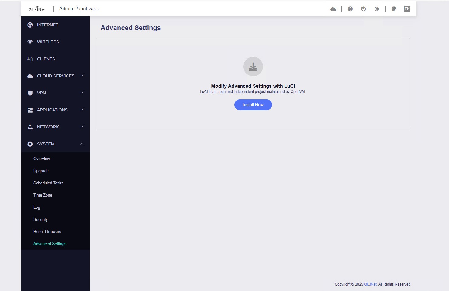 GL.iNet Flint 2 Web UI Advanced Settings LuCI