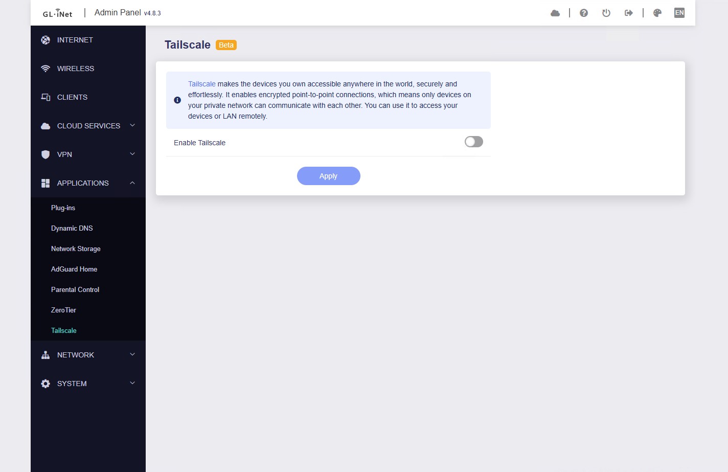 GL.iNet Flint 2 Web UI Plugins Tailscale
