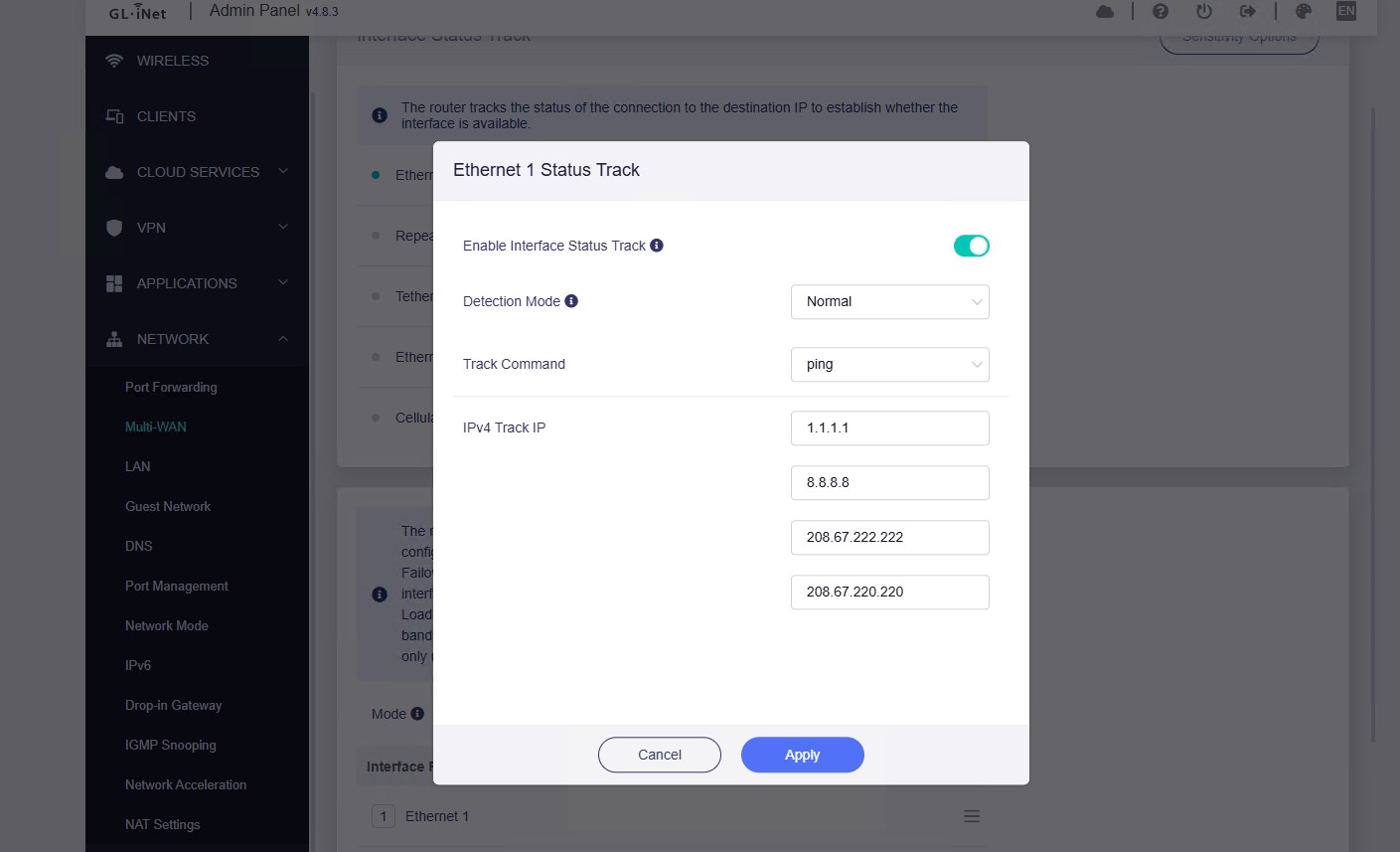 GL.iNet Flint 2 Web UI Track IP