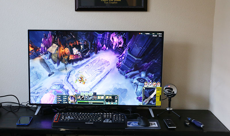 Gaming is absolutely ridiculous. I do not play games often but playing League of Legends on a 43″ Ultra HD TV monitor is monstrous. One can see the Samsung Galaxy Note 4 looks like a dwarf spawn in comparison to the 43″ Vizio.