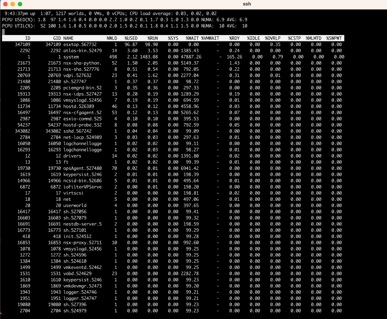AMD Pensando DSC2 100 100G 2P QSFP56 DPU VMware ESXio 8.0.1 Esxitop
