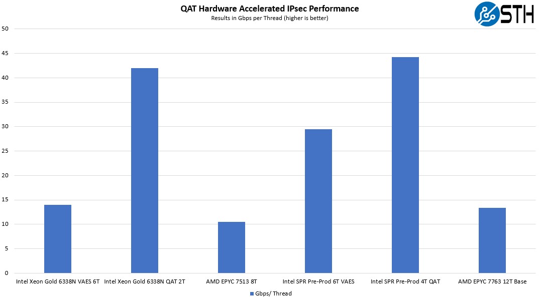 Intel Pre Production Sapphire Rapids Preview QAT IPSec Performance Per Thread Preview