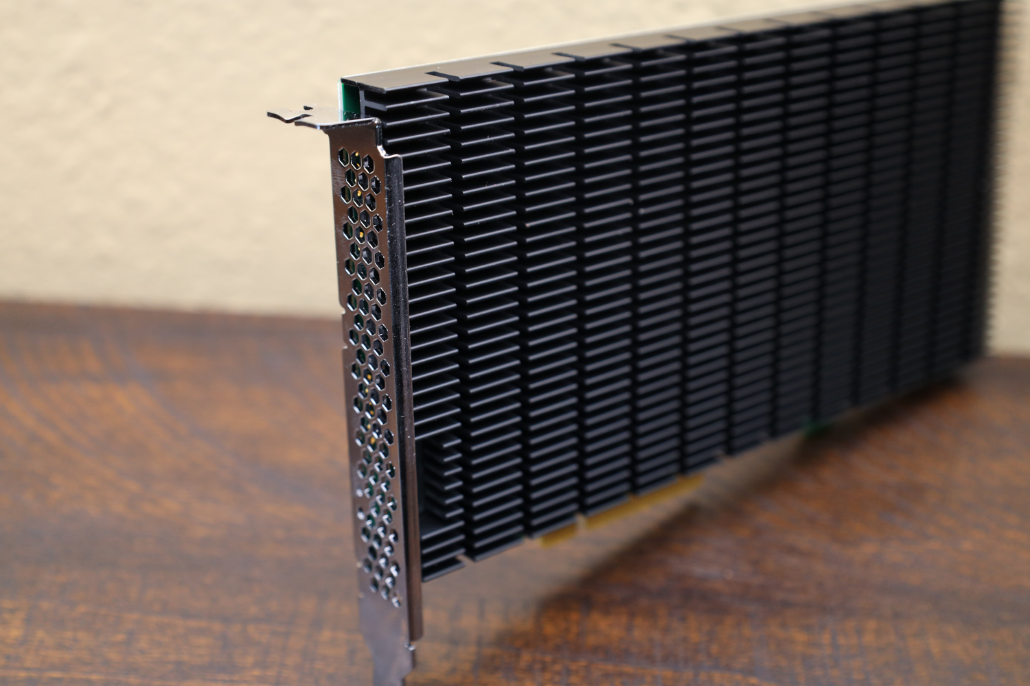 The 8-slot HighPoint SSD7540 was actively cooled, while the SSD6204 is passive. The heatsink is still impressively large and with even a moderate amount of airflow should be able to keep most drives under control.