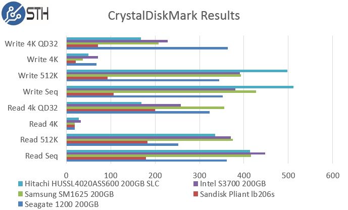 Hitachi HUSSL4020ASS600 200GB SLC – CrystalDiskMark Benchmark Comparison