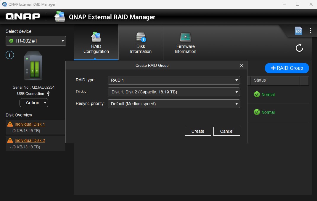 QNAP External RAID Manager QNAP TR 002 Create RAID Group