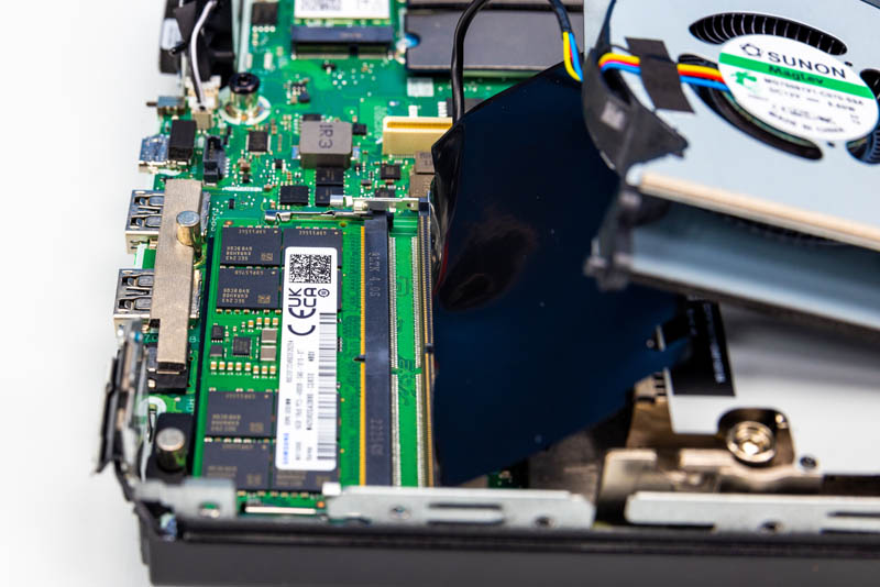 There is also a flap under the fan and over the DDR5 memory. This generation takes DDR5-4800 SODIMMs, a big upgrade over the DDR4-3200 generation as we covered in Guide DDR DDR2 DDR3 DDR4 and DDR5 Bandwidth by Generation.