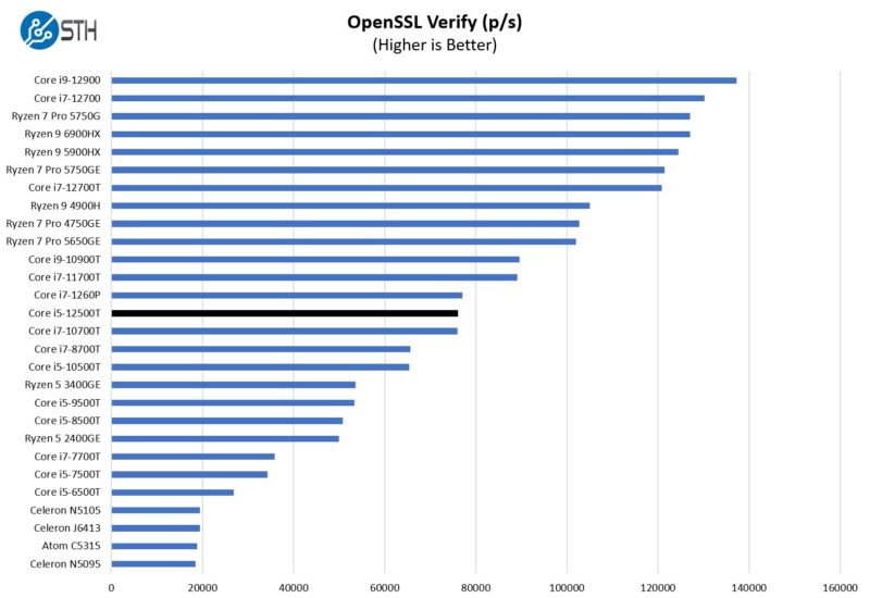 This is one where the Core i5-12500T is performing well, but that is coming at higher power consumption compared to older generation parts.
