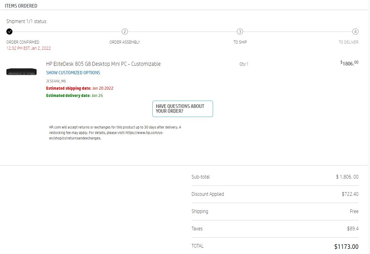 HP EliteDesk 805 G6 Mini Order 1 Accessed 2022 02 12