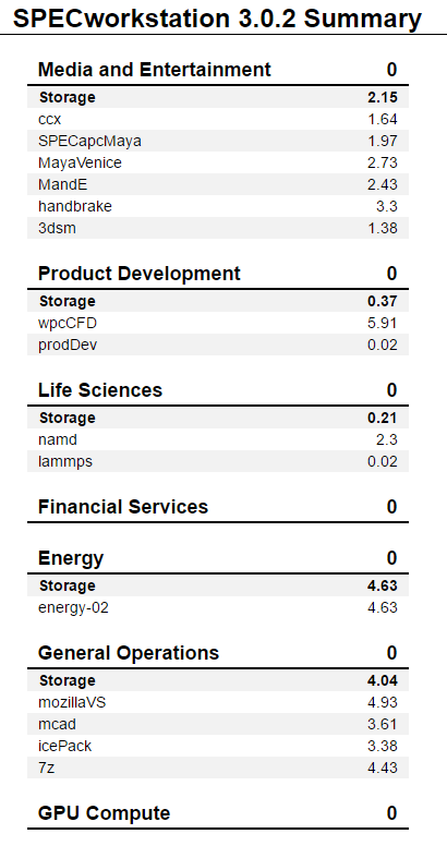 SPECworkstation benchmark is an excellent benchmark to test systems using workstation-type workloads. In this test, we only ran the Storage component, which is fifteen separate tests.