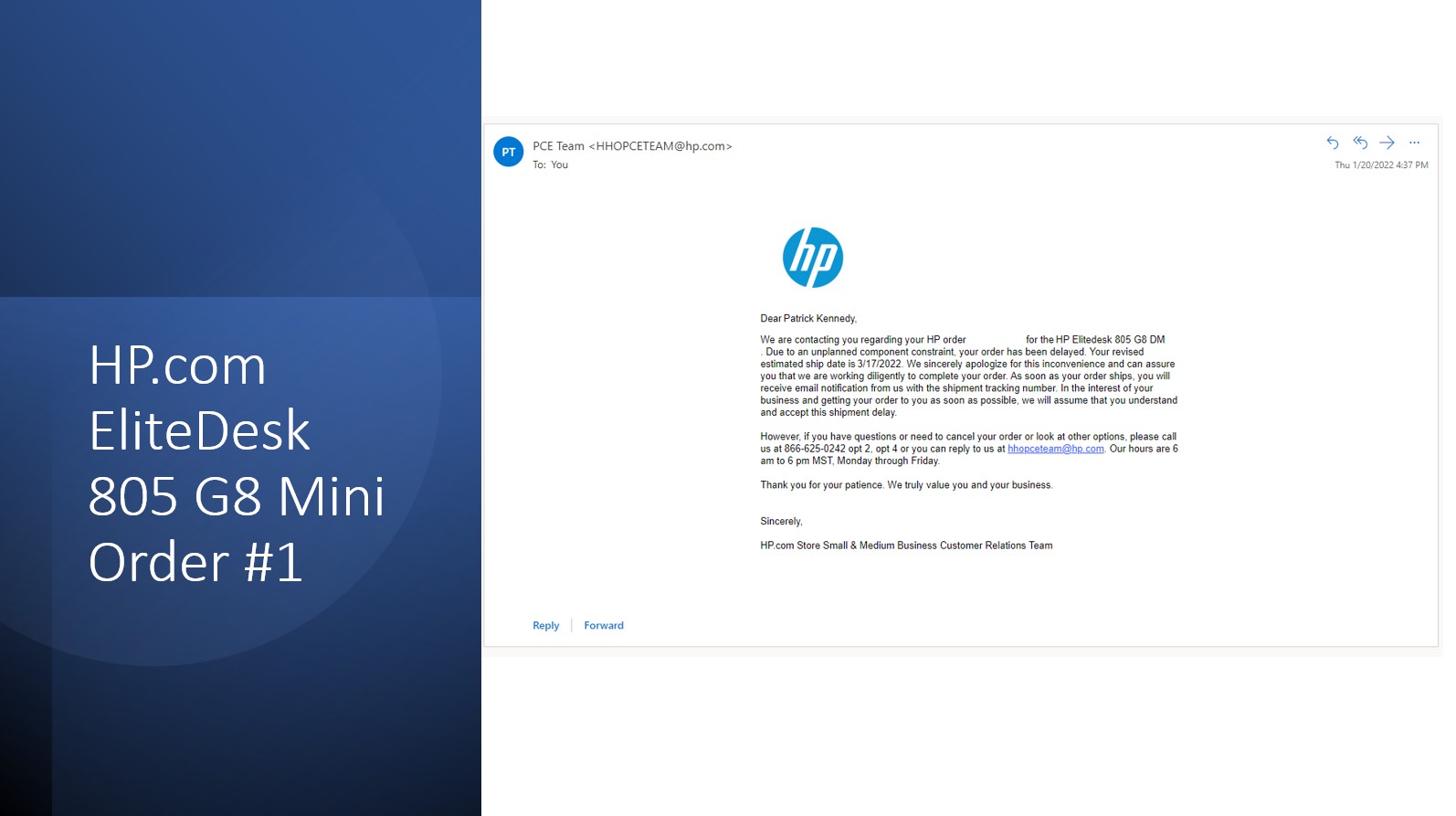 STH HP.com Secret Shopper Order 1 2022 01 20 Delay To 2022 03 17