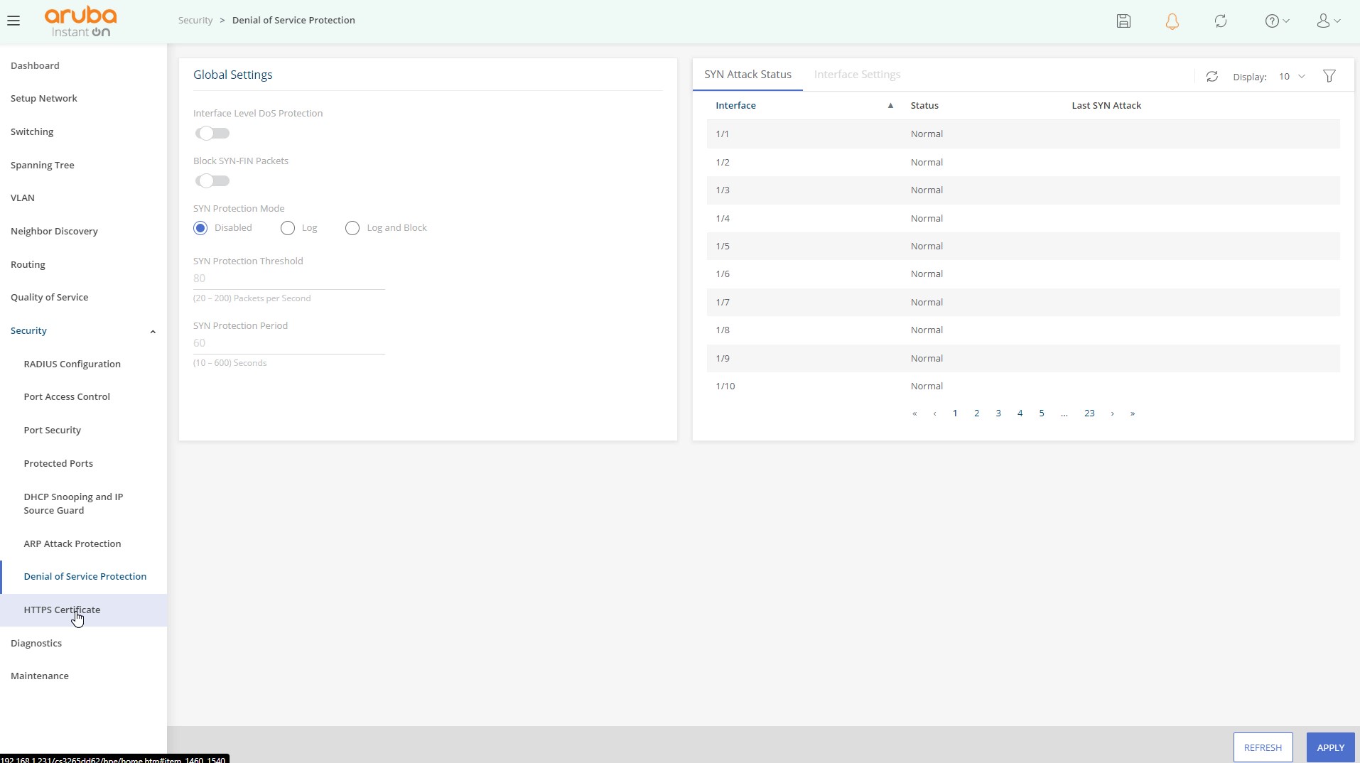 HPE Aruba Instant ON 1960 Web UI DoS Protection