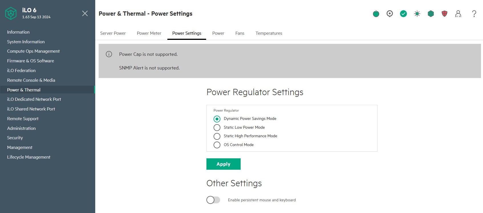 HPE ILO 6 Advanced Power And Thermal Power Settings
