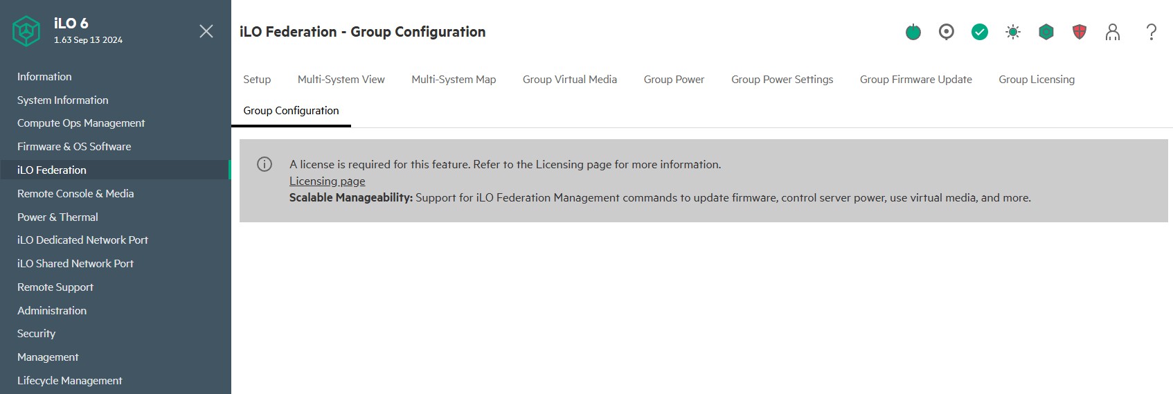 HPE ILO 6 Essentials ILO Federation Group Configuration Requires License