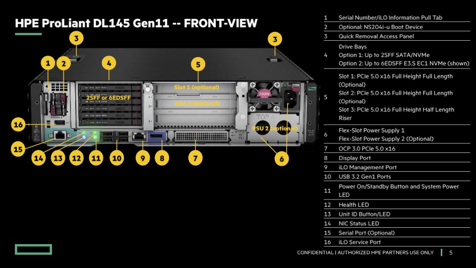 The idea is that instead of using a more custom box like the HPE Edgeline EL8000, the HPE ProLiant DL145 Gen11 will be used for the same use cases when all of the fast field swappability is not needed.