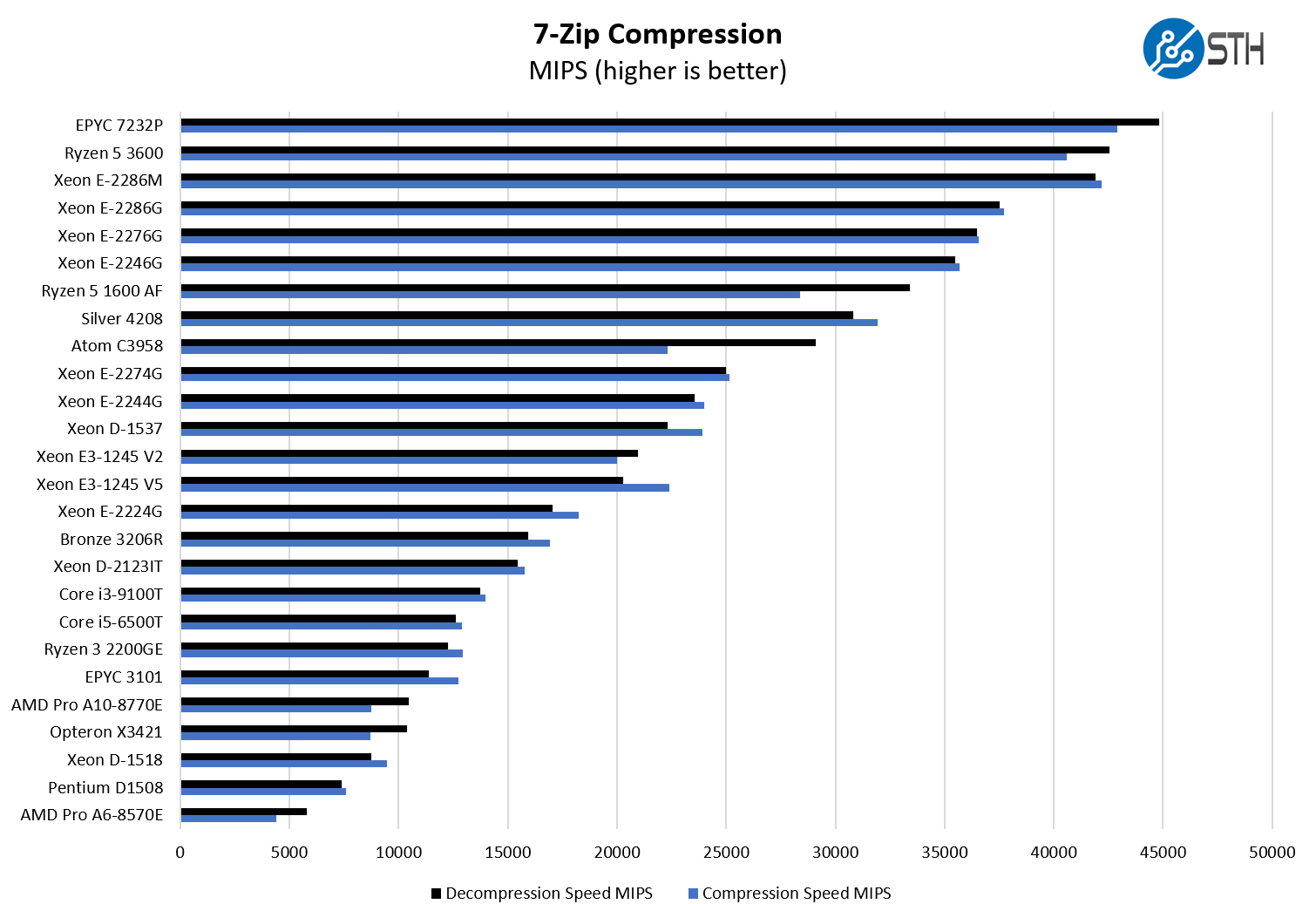 When we look to the Intel Xeon E-2224 in theĀ HPE ProLiant MicroServer Gen10 Plus we see a massive performance boost. This is largely due to the TDP, but also the Xeon D-1500 series was an early 14nm chip based on Broadwell microarchitecture.